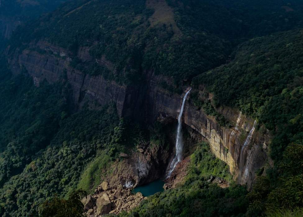 Nohsngithiang Falls (also known as the Seven Sisters Waterfalls or Mawsmai Falls)