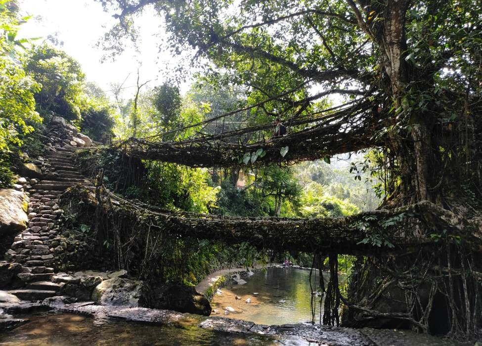 A trek to the nearby Rewai Village is another interesting activity. Walk down a flight of almost 100 steps to witness nature’s wonder, living-root bridge.  The bridges are tangles of massive thick roots, which the local people intertwined to form a bridge that can hold several people at a time. The root bridges, may be up to over a hundred feet long, take ten to fifteen years to become fully functional, but they become very strong in the process. The bridges live and keep growing and strengthen over time. The useful lifespan of the bridges, is thought to be 500–600 years.